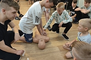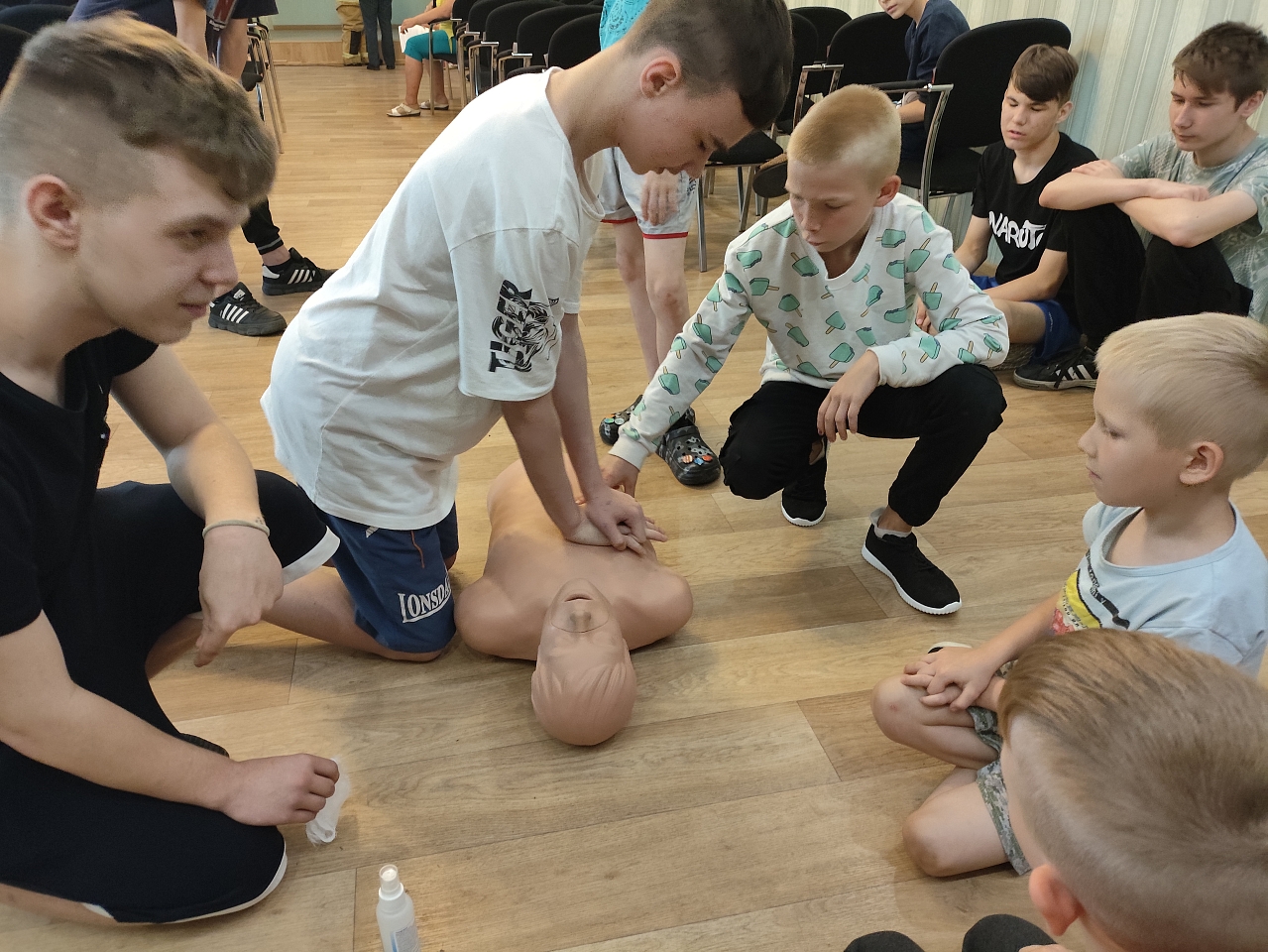 В программу мероприятия входило: наложение кровоостанавливающего жгута при артериальном кровотечении во время травмы бедра и плеча, наложение тугой повязки на голень пострадавшему при кровотечении, наложение повязки "Чепец", транспортировка пострадавшего с использованием плащевых носилок, выполнение базовой сердечно-легочной реанимации.