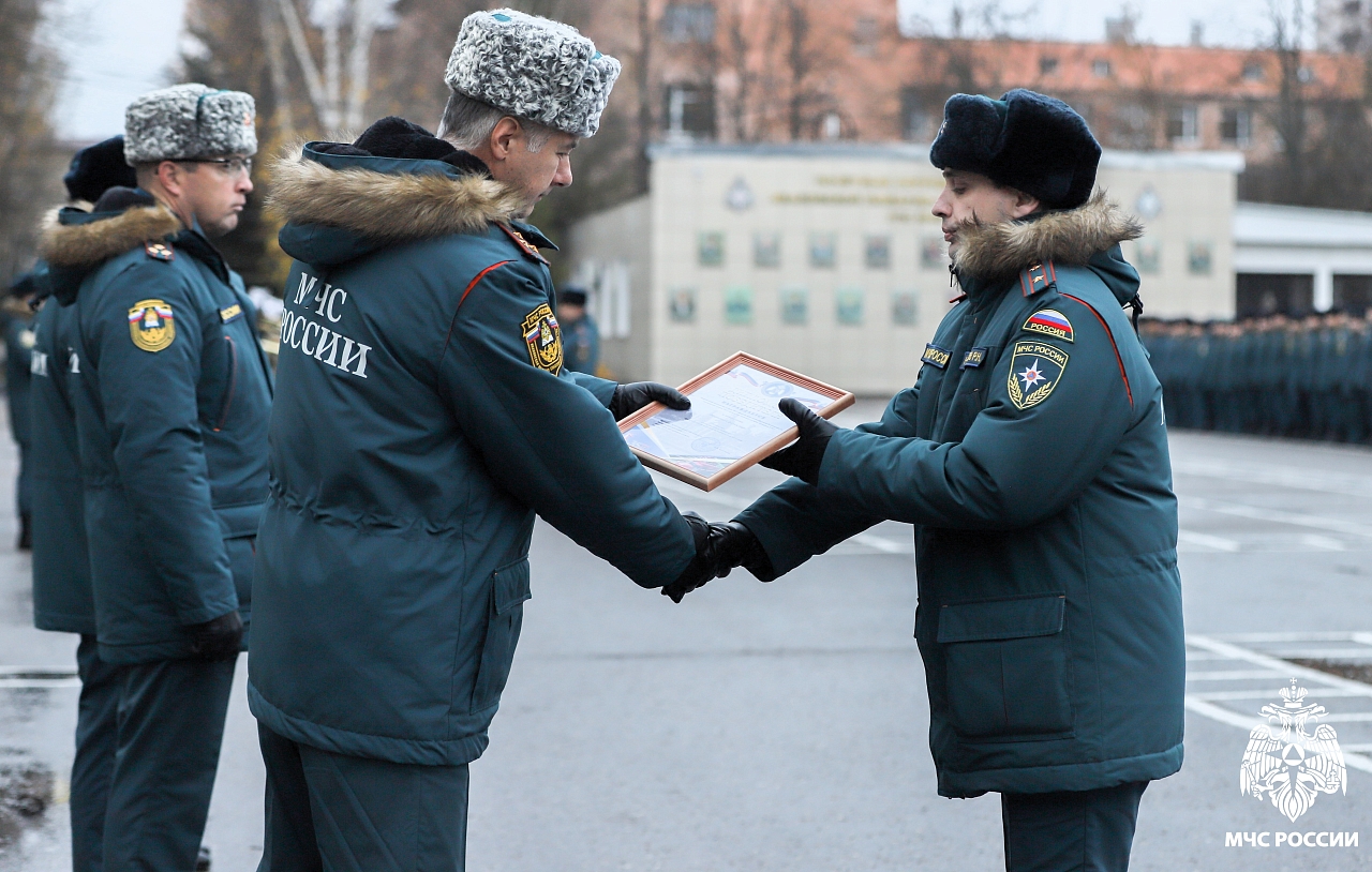 - флаг МЧС России – младшему сержанту внутренней службы, командиру 323 учебной группы факультета техносферной безопасности Давиденко Алексею;