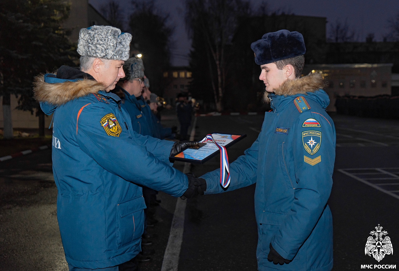 - флаг МЧС России – рядовому внутренней службы, курсанту 512 учебной группы факультета пожарной безопасности Алиевой Диларе;
