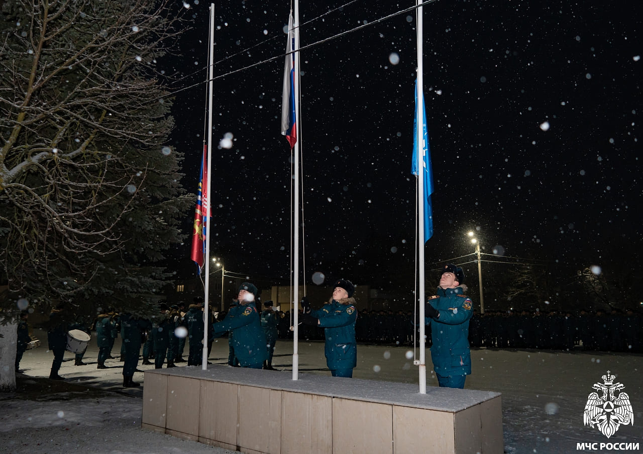 Предпоследняя рабочая неделя в уходящем 2025 году началась в образовательной организации с утреннего построения на главном плацу учебного заведения. За высокие показатели в учебе и активное участие в общественной жизни академии почетное право поднять: