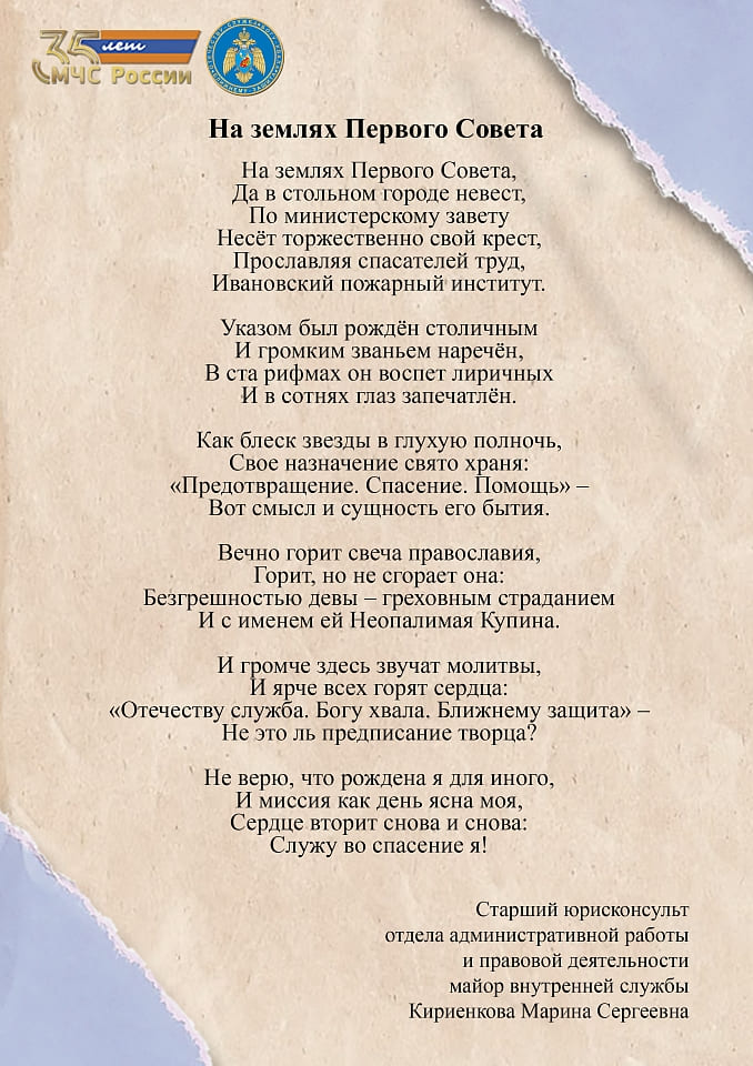 Страница 4 из 17 сборника авторских стихотворений личного состава Ивановской пожарно-спасательной академии ГПС МЧС России, посвященного 35-летию МЧС России.