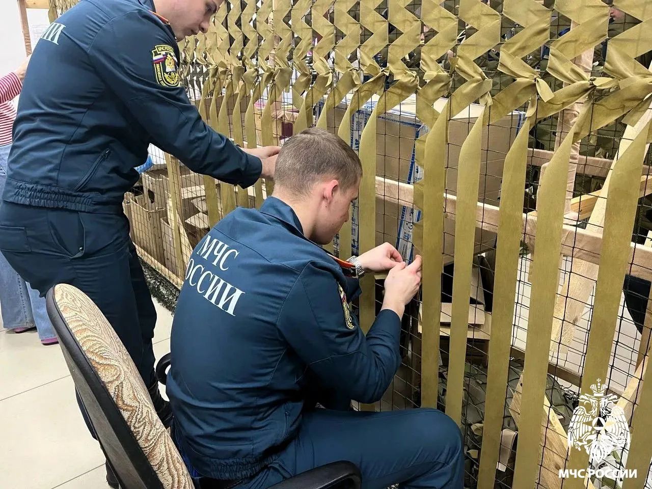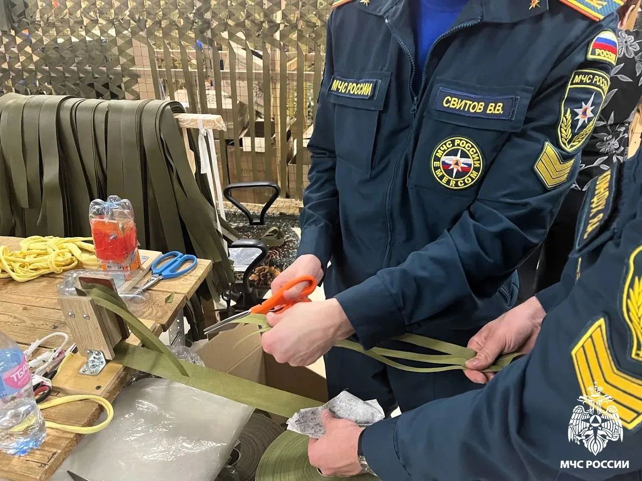 В минувшие выходные курсанты 32-го курса проявили не только профессиональную подготовку, но и высокую гражданскую позицию. Юноши приняли активное участие в изготовлении маскировочных сетей, предназначенных для нужд военнослужащих, задействованных в специальной военной операции.