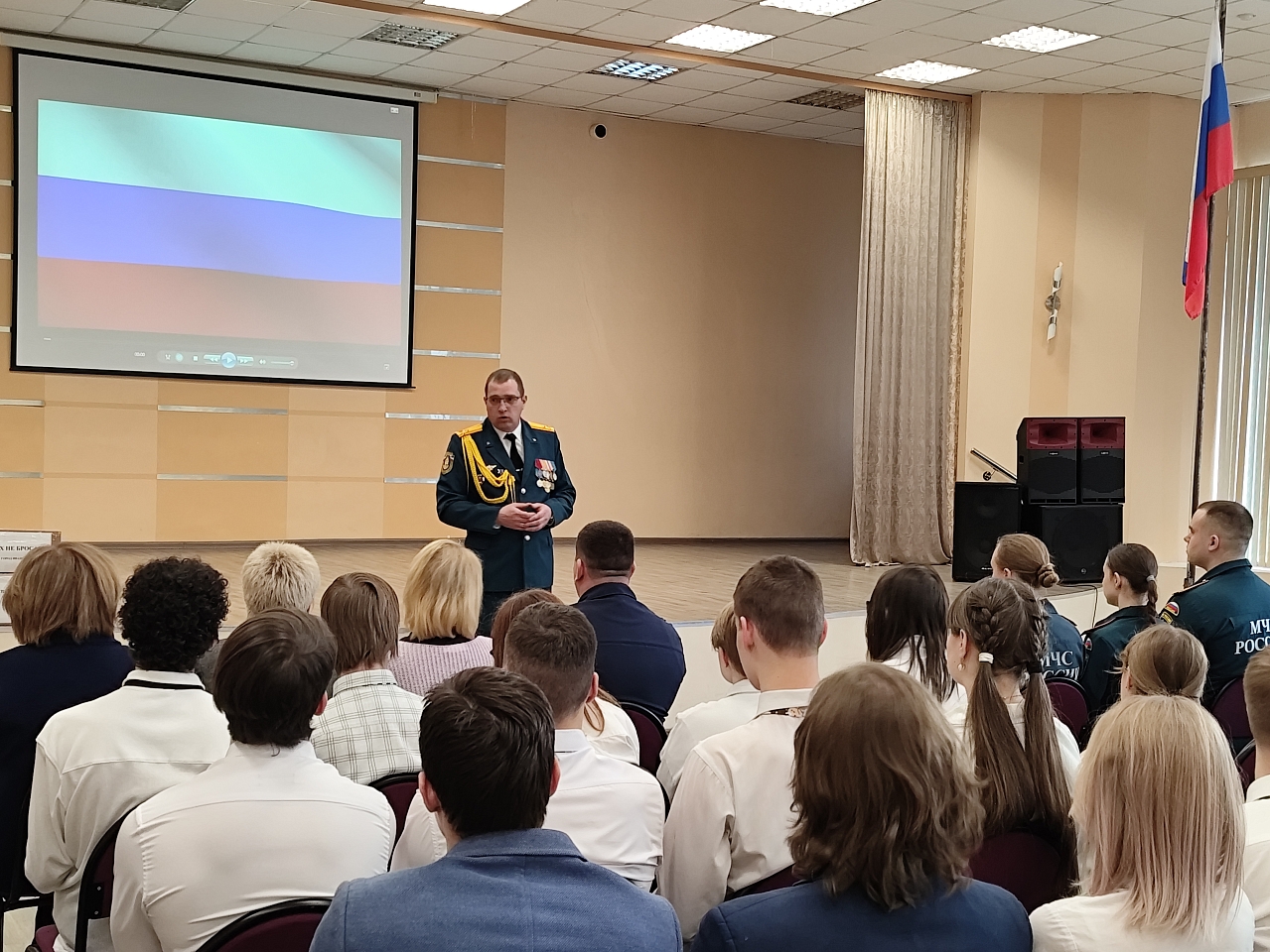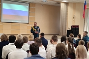От лица Академии выступил Костылев Дмитрий Николаевич. Он поделился собственной историей службы в ФПС ГПС МЧС России и показал ребятам презентационные ролики об учебе в Академии и выезде созданной на базе учебного заведения аэромобильной группировки в Курганскую область для ликвидации последствий затопления.