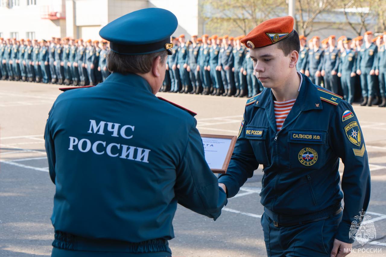 - государственный флаг Российской Федерации предоставилось вице-рядовому, командиру отделения 10 «Б» класса кадетского пожарно-спасательного корпуса - Симашову Даниилу;