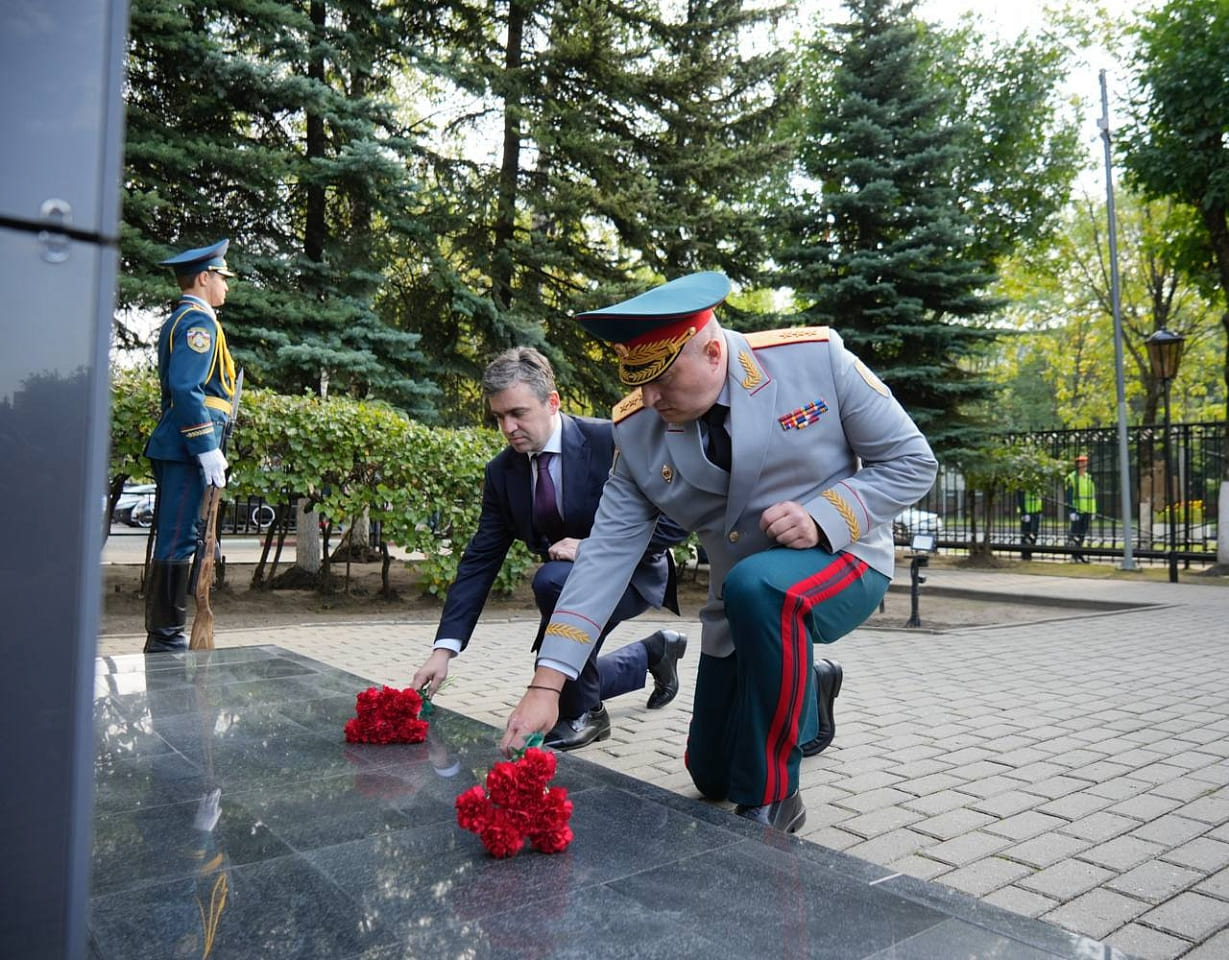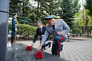 Совместно с руководством и личным составом вуза глава ведомства возложил цветы к мемориалу, установленному в память о выпускниках, погибших при исполнении служебных обязанностей.
