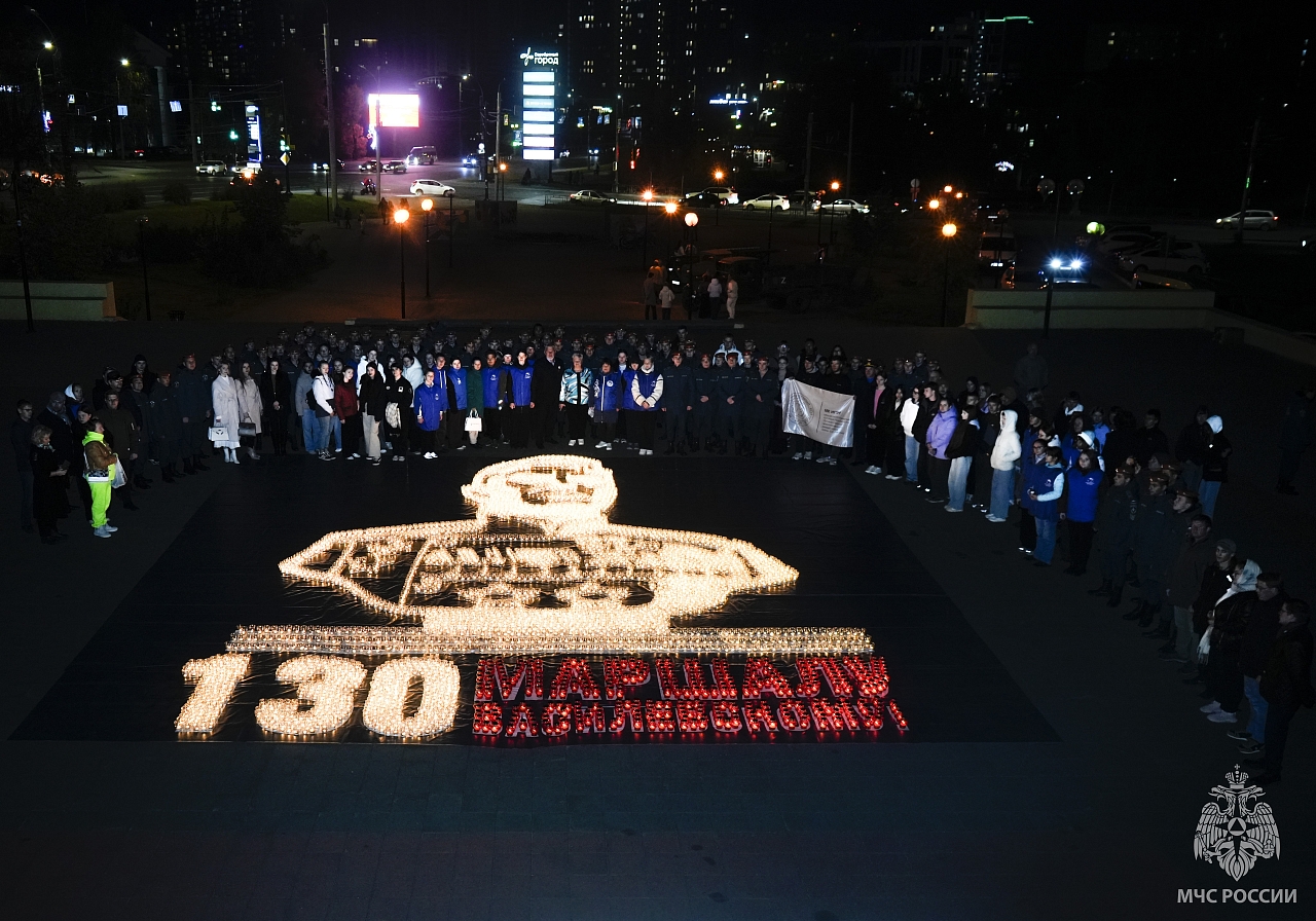 - Курсанты академии совместно с Волонтерами Победы, студентами ивановских вузов и колледжей, представителями общественных организаций и неравнодушных жителей областного центра с помощью горящих свечей воссоздали образ великого полководца, символизирующего память и уважение к герою великого прошлого.