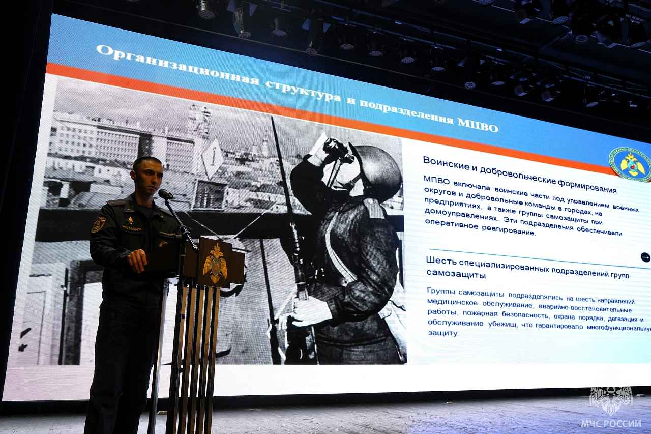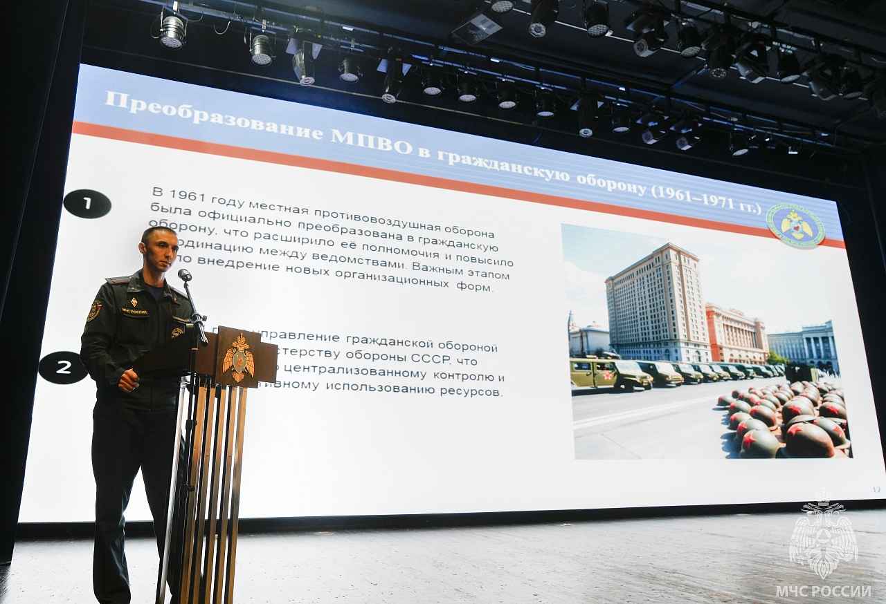 Отдельное внимание было уделено периоду холодной войны, в котором вопросы безопасности и защиты населения приобрели особую актуальность, а также современному состоянию и задачам гражданской обороны в России.