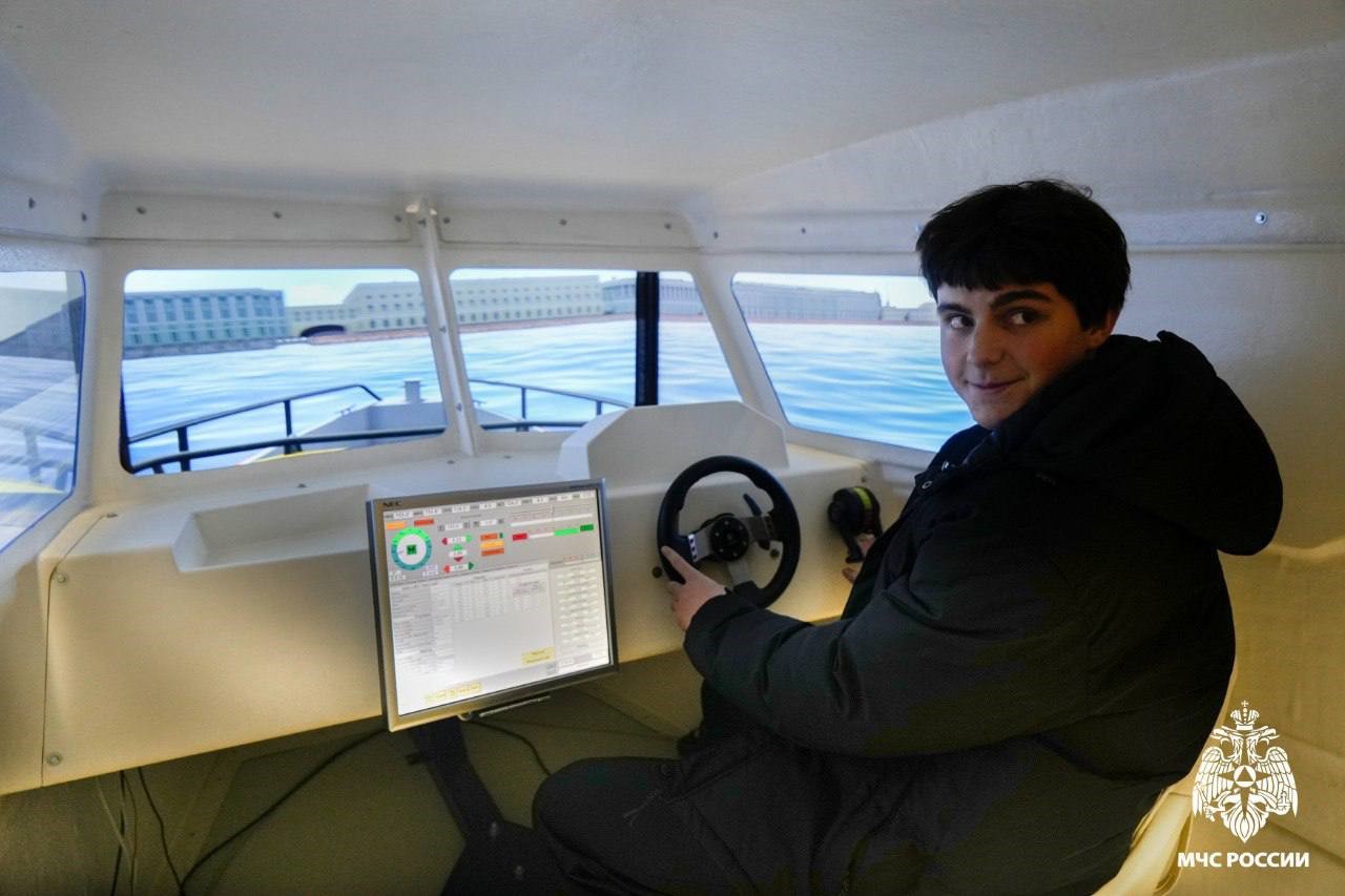 Далее школьники перешли в класс ДТП, где курсанты приобретают навыки быстрого реагирования в случае работы на месте дорожно-транспортных происшествий, оказания первой помощи и эвакуации пострадавших. В многофункциональном учебно-тренажерном комплексе ребята попробовали управлять пожарной автолестницей и спасательным судном в акватории Санкт-Петербурга.