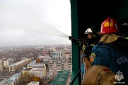 В ходе мероприятия были отработаны способы подачи огнетушащих веществ на 25 этаж многоквартирного дома: