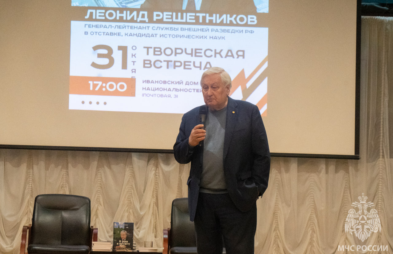 Обучающиеся Ивановской пожарно-спасательной академии ГПС МЧС России познакомились с генерал-лейтенантом Службы внешней разведки в отставке, кандидатом исторических наук Леонидом Петровичем Решетниковым. Сотрудник рассказал слушателям о ключевых аспектах разведывательной деятельности, ее влиянии на национальную безопасность и роль в глобальном сотрудничестве.