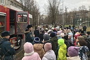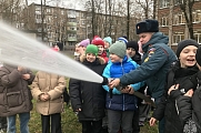 В рамках тематического занятия ребята познакомились с устройством пожарного автомобиля, его вооружением и средствами защиты. Примерили боевую одежду пожарных и попробовали подать воду из пожарного ствола.