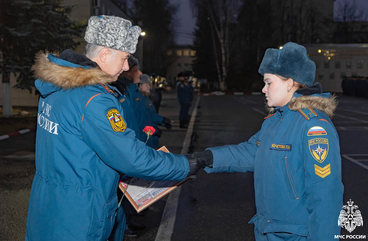 - флаг МЧС России – рядовому внутренней службы, курсанту 512 учебной группы факультета пожарной безопасности Алиевой Диларе;