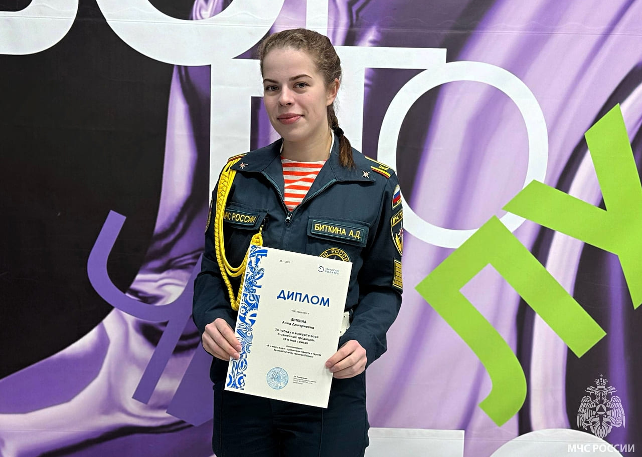 30 ноября в университете состоялось торжественное награждение авторов лучших работ. Одна из победителей — курсант 531 учебной группы Ивановской пожарно-спасательной академии ГПС МЧС России Биткина Анна Дмитриевна — была удостоена диплома победителя в номинации «Я и моя семья — хранители памяти о героях Великой Отечественной войны». Девушка получила памятный подарок и диплом, подтверждающий её успех.