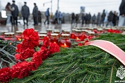 Участники акции зажгли свечи, возложили цветы и почтили память всех погибших в Великой Отечественной войне минутой молчания.