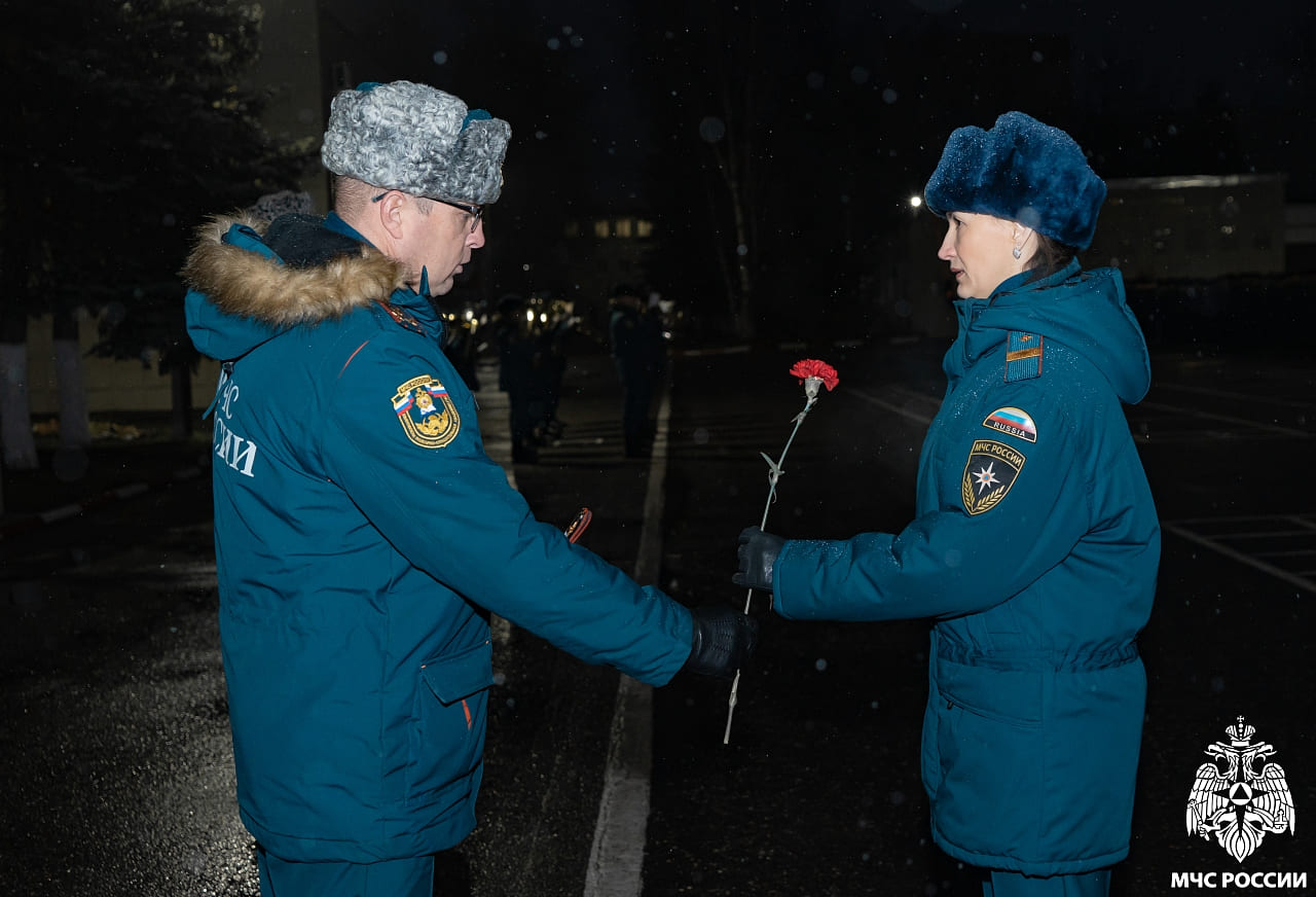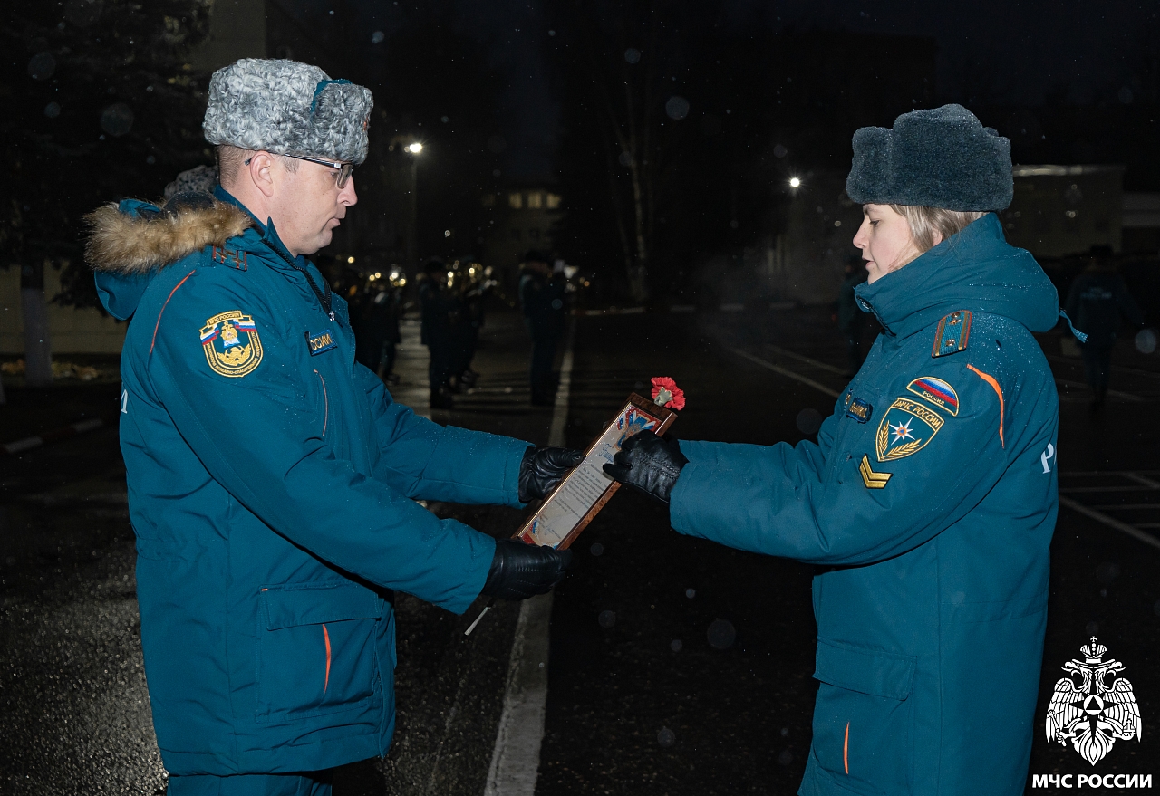 -Флаг МЧС России – младшему сержанту внутренней службы Сорокину Дмитрию, командиру отделения 323 учебной группы, факультета техносферной безопасности;