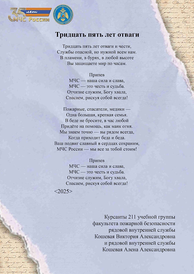 Заключительная 17 страница сборника авторских стихотворений личного состава Ивановской пожарно-спасательной академии ГПС МЧС России, посвященного 35-летию МЧС России.