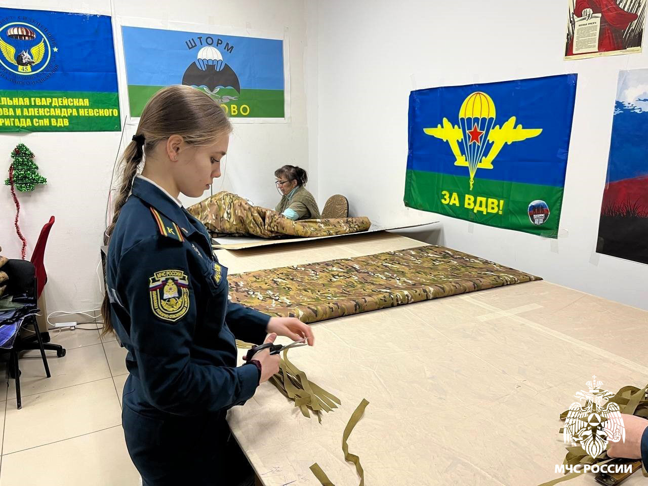 В минувшие выходные обучающиеся нашего учебного заведения продемонстрировали высокий уровень гражданской ответственности и готовности оказать поддержку военнослужащим, участвующим в специальной военной операции. Курсанты факультета пожарной безопасности приняли участие в мероприятии по изготовлению маскировочных сетей в Центре поддержки участников СВО.