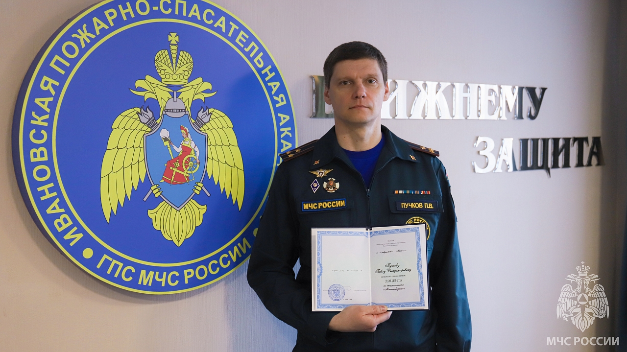 26 марта в Ивановской пожарно-спасательной академии ГПС МЧС России состоялось заседание Ученого совета. Мероприятие проходило под председательством временно исполняющего обязанности начальника академии полковника внутренней службы, кандидата технических наук, доцента Булгакова Владислава Васильевича. В торжественной обстановке председатель Ученого совета вручил аттестат доцента начальнику кафедры механики, ремонта и деталей машин (в составе учебно-научного комплекса «Пожаротушение») полковнику внутренней службы Пучкову Павлу Владимировичу.