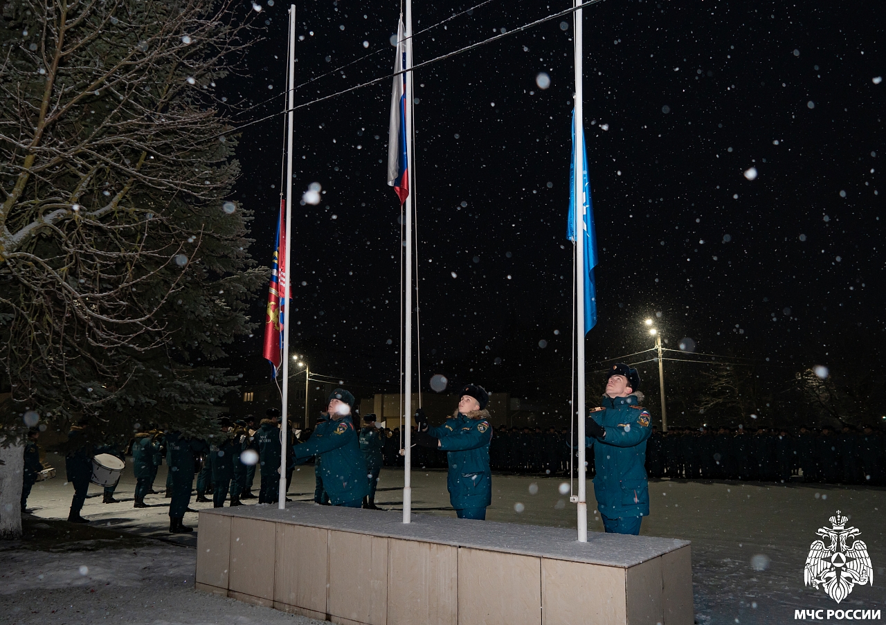 - флаг МЧС России – сержанту внутренней службы, командиру отделения 423 учебной группы факультета техносферной безопасности Скрябину Владиславу;