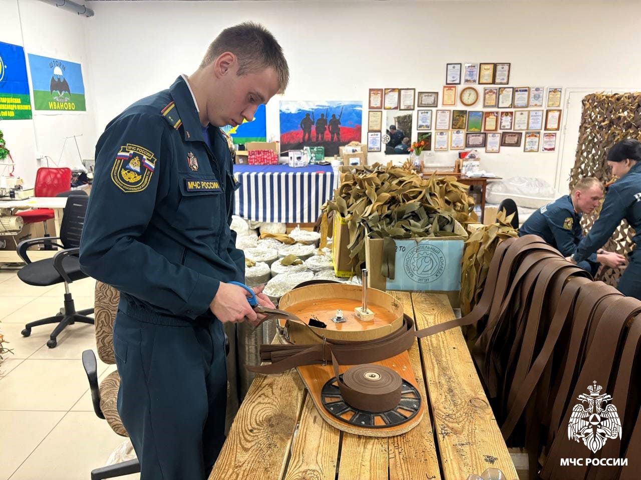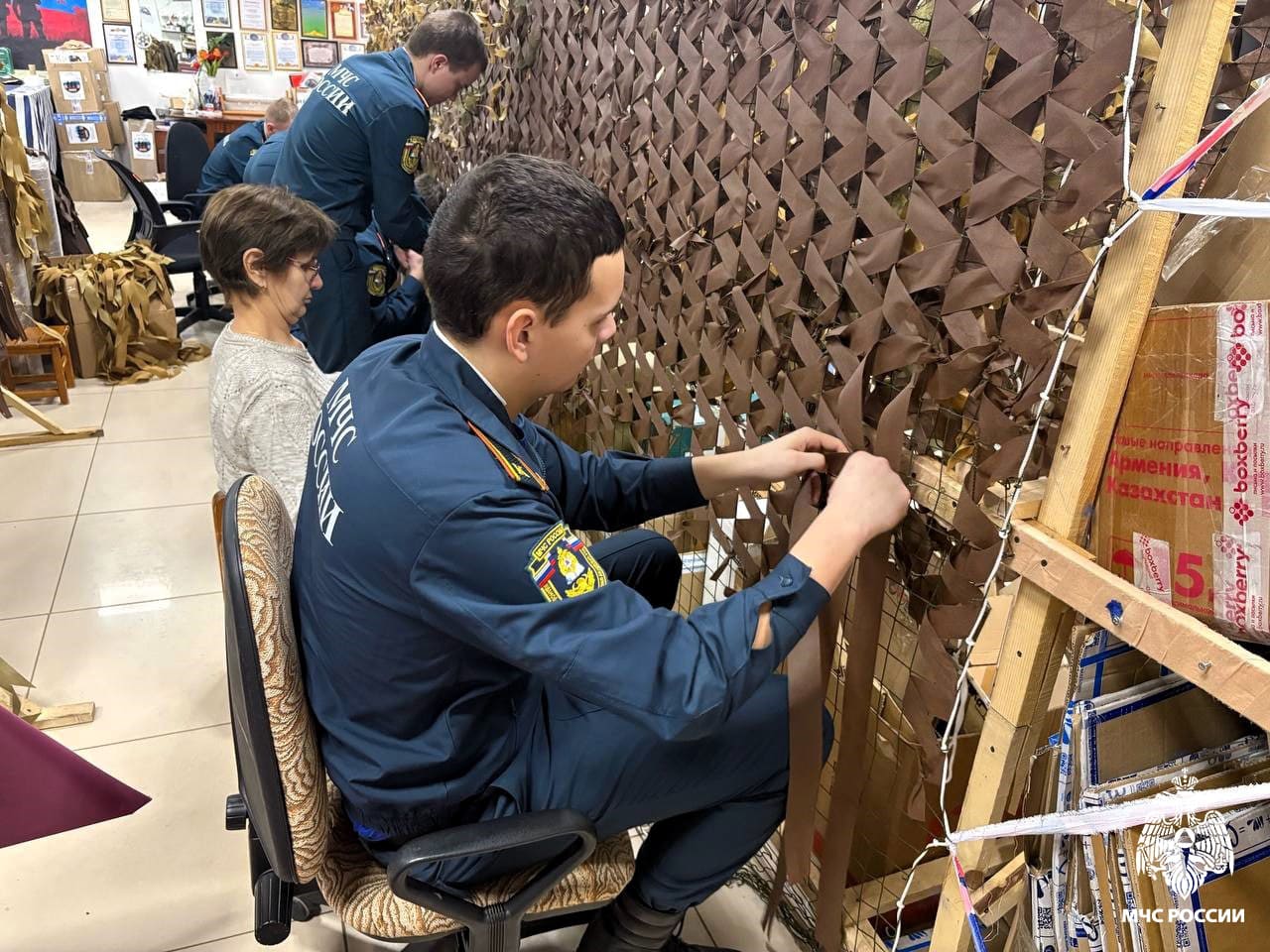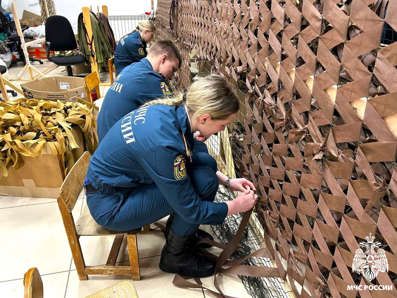 В минувшие выходные курсанты 21-го курса факультета пожарной безопасности вновь продемонстрировали активную гражданскую позицию. Ребята присоединились к Центру подготовки помощи участникам специальной военной операции, чтобы внести свой вклад в общее дело – плетение маскировочных сетей.