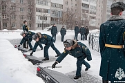 Параллельно курсанты академии приняли участие в церемонии возложения цветов к мемориальному комплексу на территории учебного заведения, почтив память сотрудников гарнизона, ветеранов Великой Отечественной войны и тружеников тыла из числа сотрудников вуза.