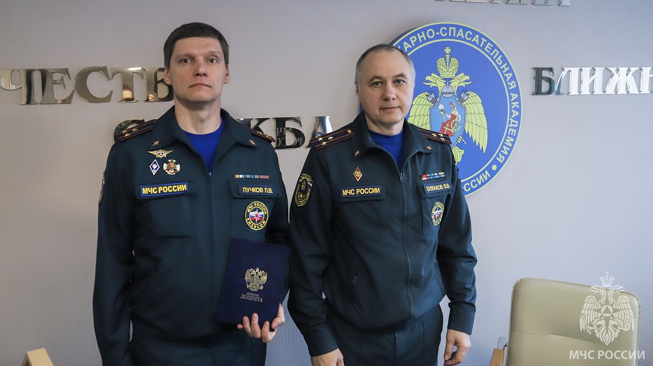 26 марта в Ивановской пожарно-спасательной академии ГПС МЧС России состоялось заседание Ученого совета. Мероприятие проходило под председательством временно исполняющего обязанности начальника академии полковника внутренней службы, кандидата технических наук, доцента Булгакова Владислава Васильевича. В торжественной обстановке председатель Ученого совета вручил аттестат доцента начальнику кафедры механики, ремонта и деталей машин (в составе учебно-научного комплекса «Пожаротушение») полковнику внутренней службы Пучкову Павлу Владимировичу.